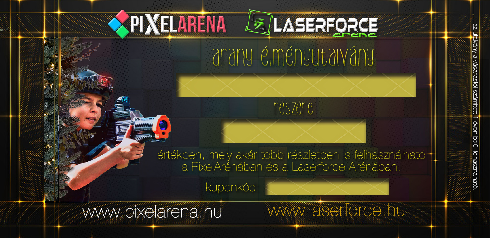 Fedezd fel a Laser Force Aréna csodálatos lehetőségeit, és ajándékozz egy olyan utalványt amely élményeket nyújt! Ezzel a különleges ajándékkal lehetőséget adsz szeretteidnek, hogy önfeledten szórakozzanak.  Adj ajándékba egy élményt, amely felejthetetlen emlékeket teremt!